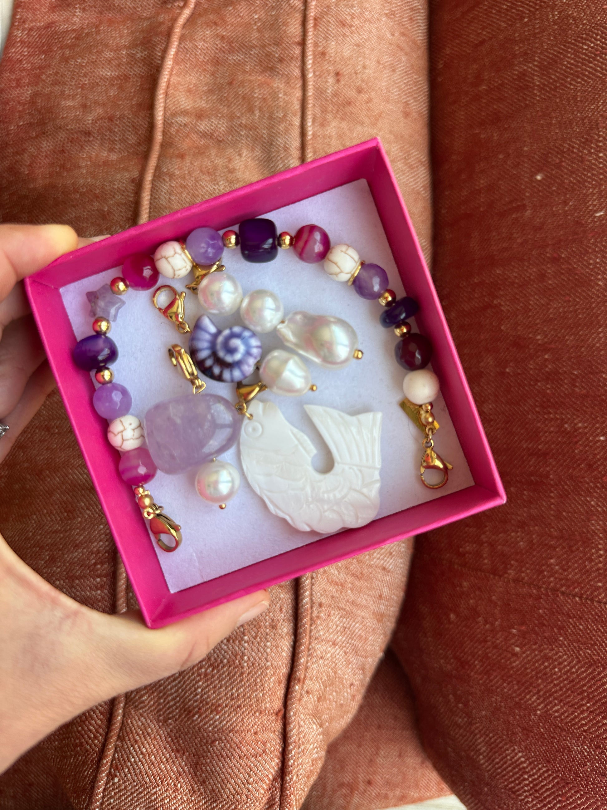 Charm Barra Perla Violeta Piedra Semipreciosa