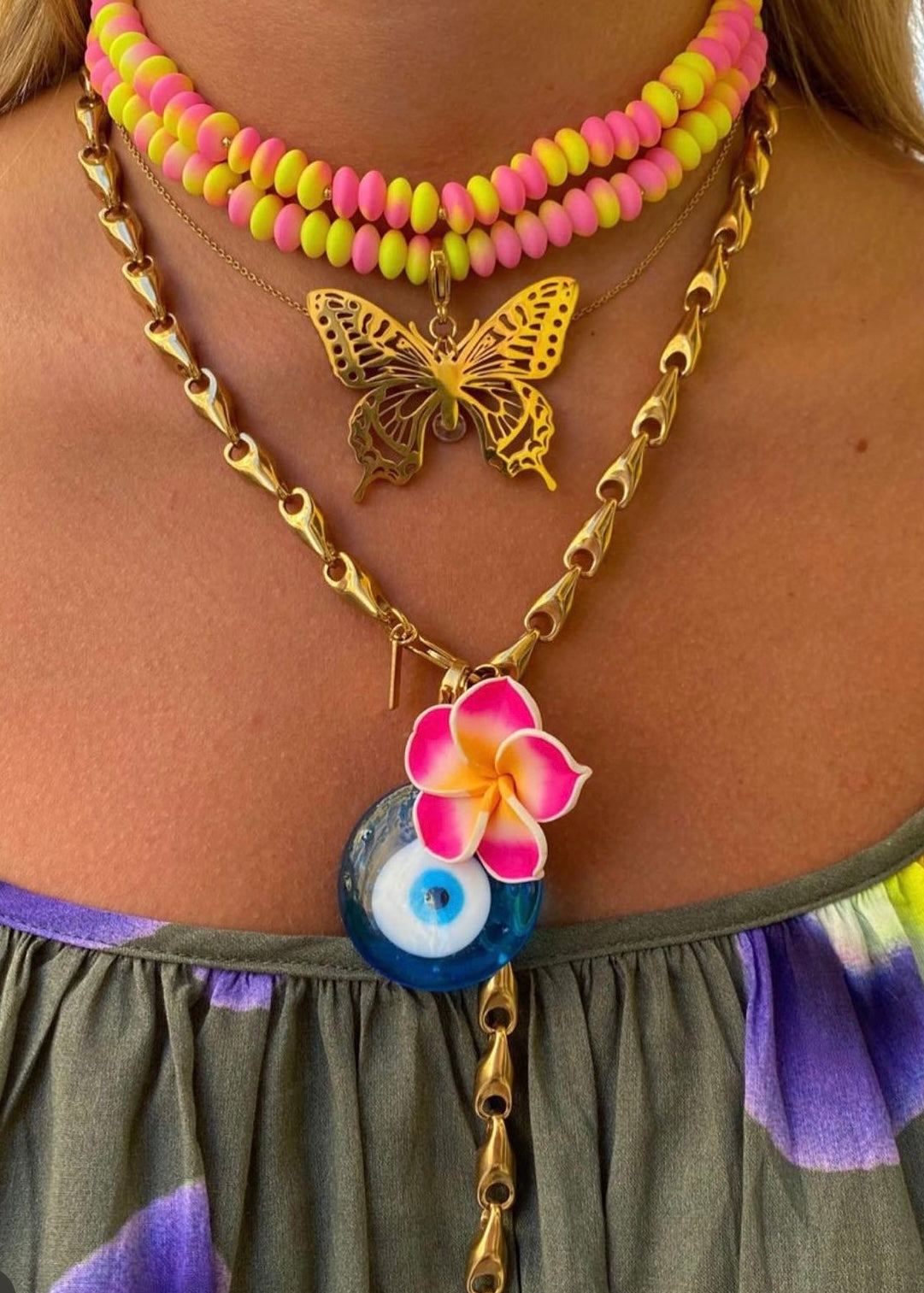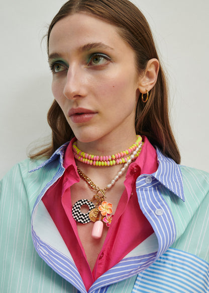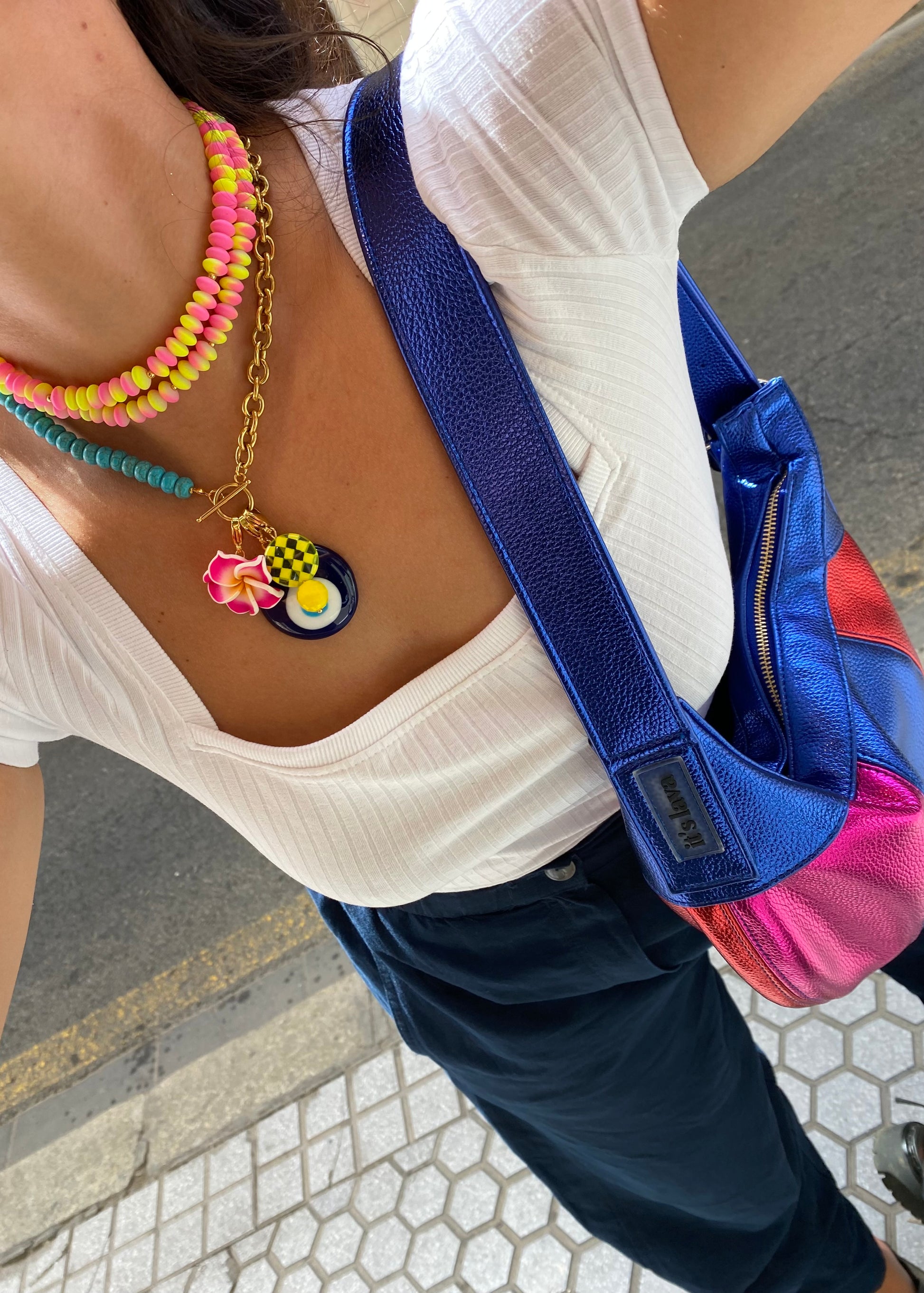 - Lo puedes llevar como doble chocher, puedes quitar uno y llevar un chocker o puedes unir los dos chockers y hacerlo collar largo.