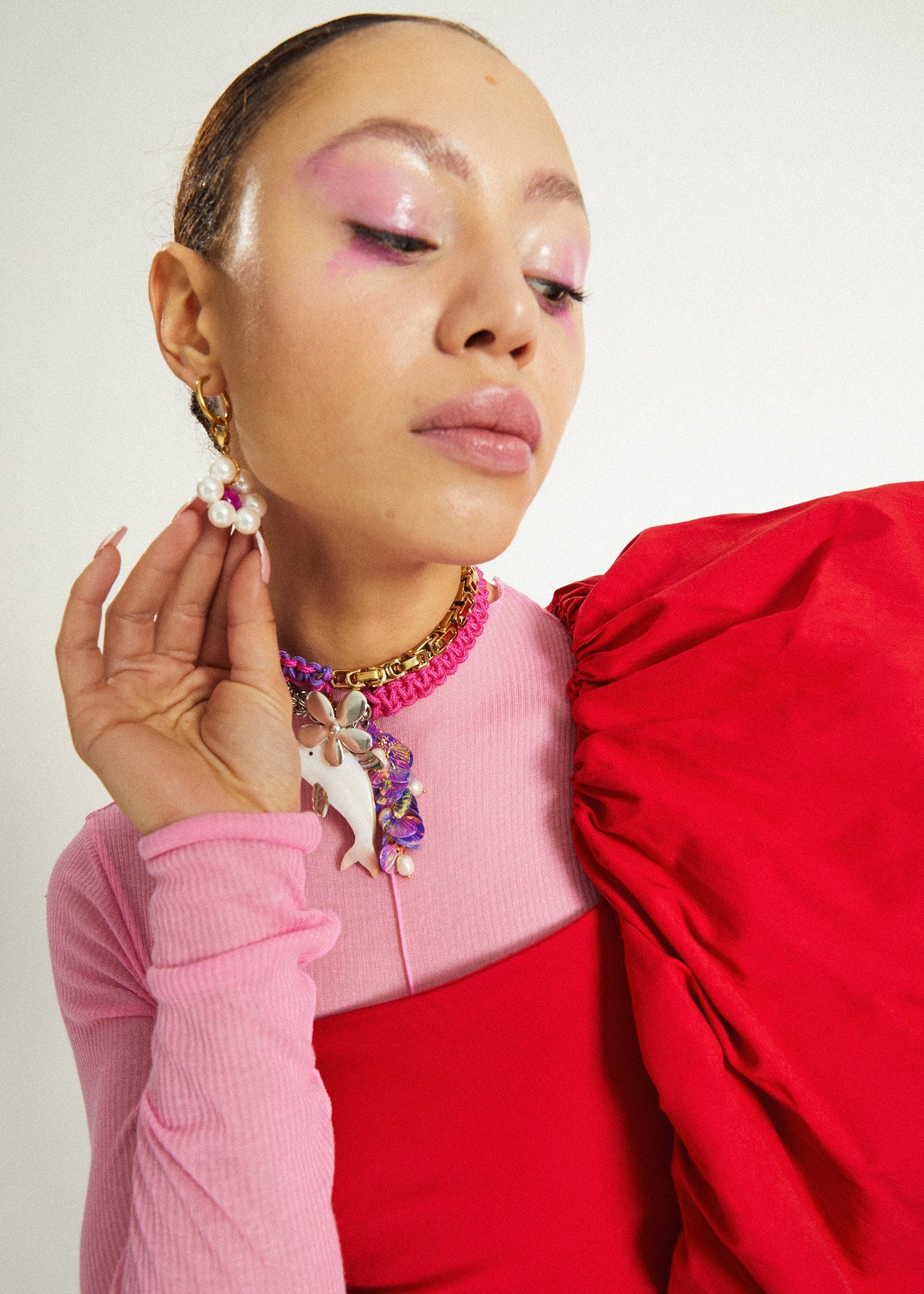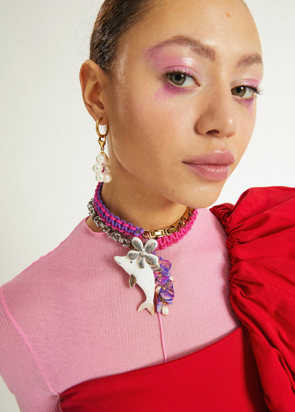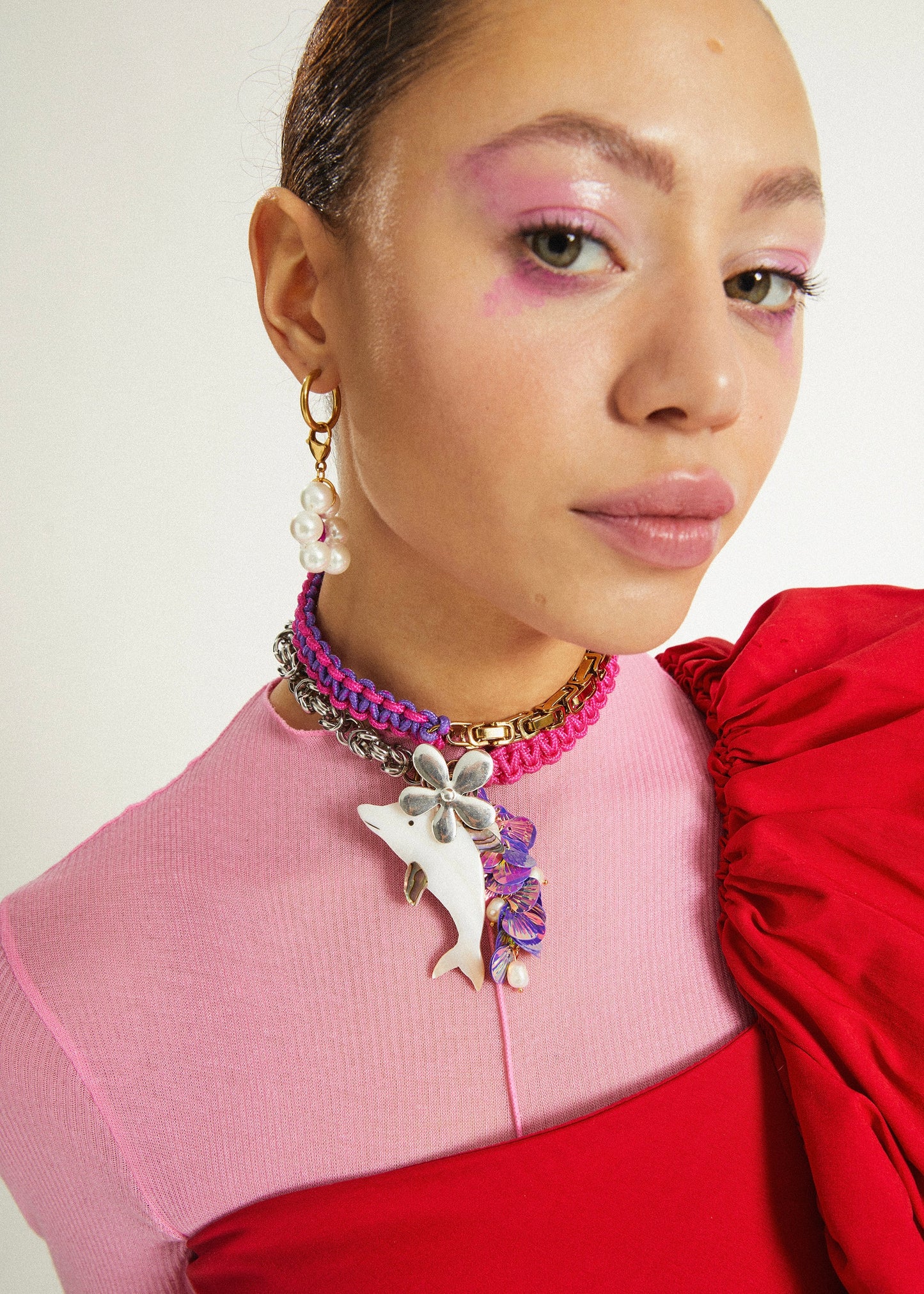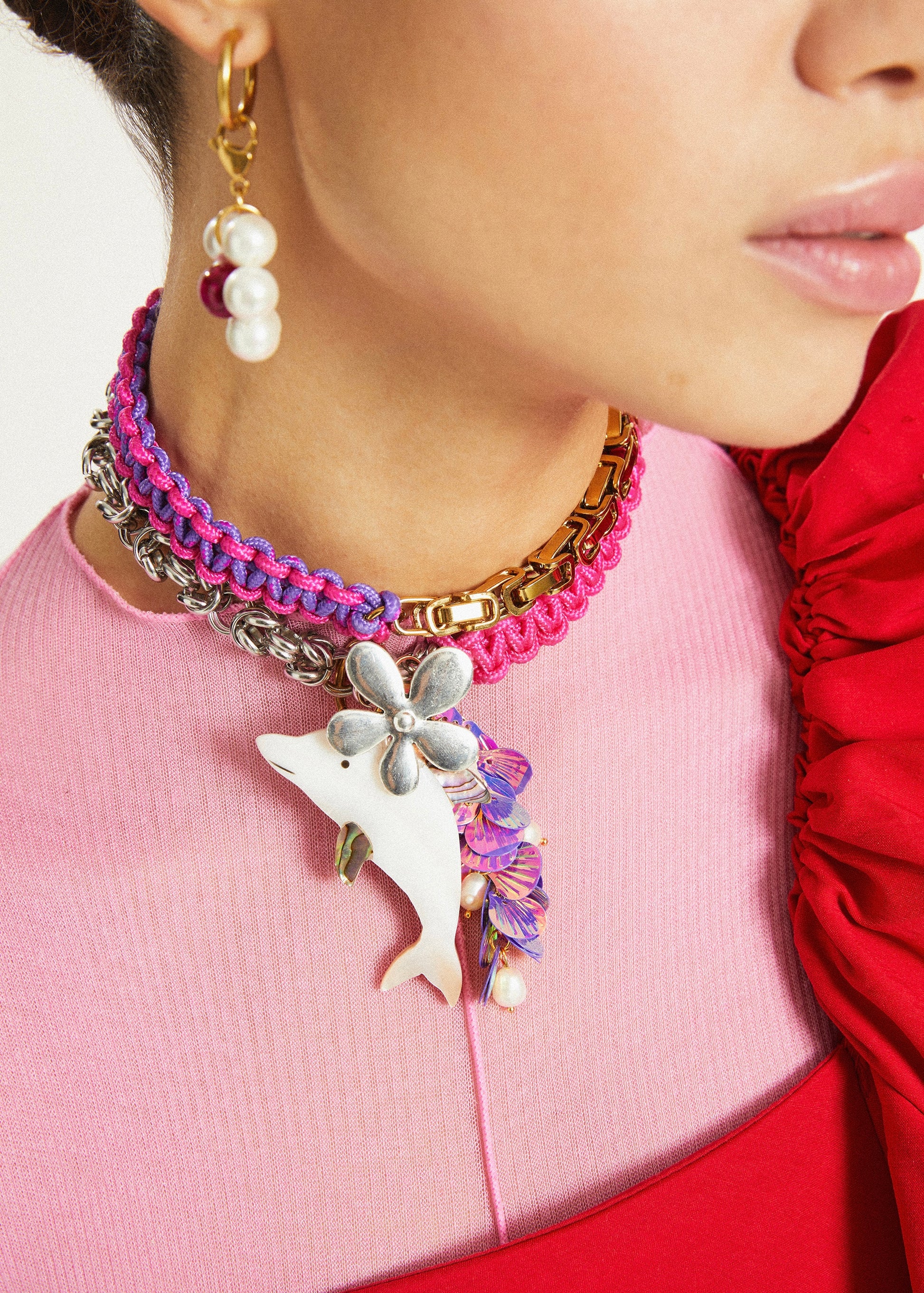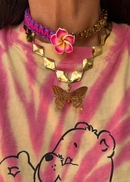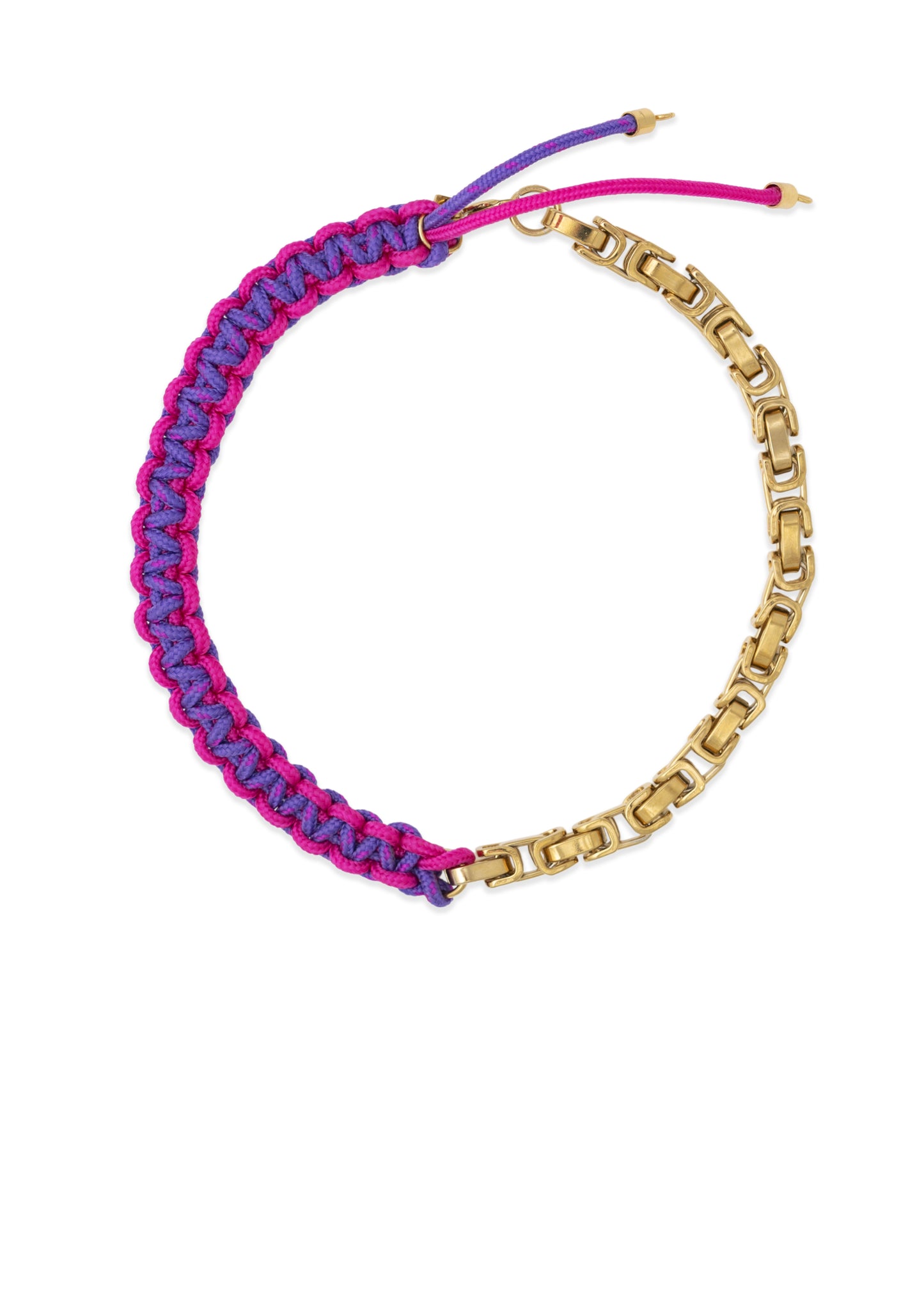 - Materiales: cuerda de paracaídas, acero inoxidable chapado en oro 18k.