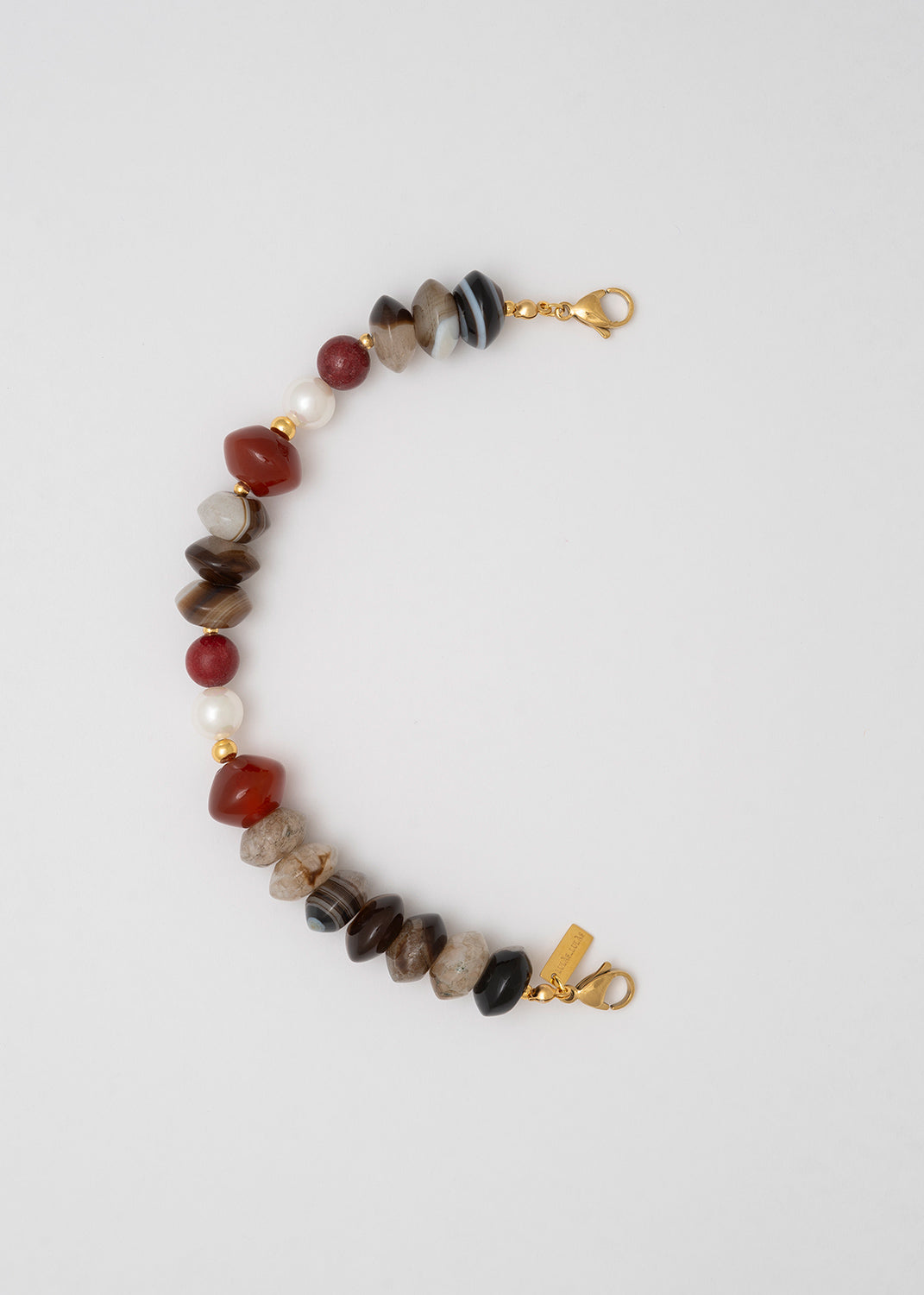 ágata, jade, perla, acero inoxidable chapado en oro 18k.