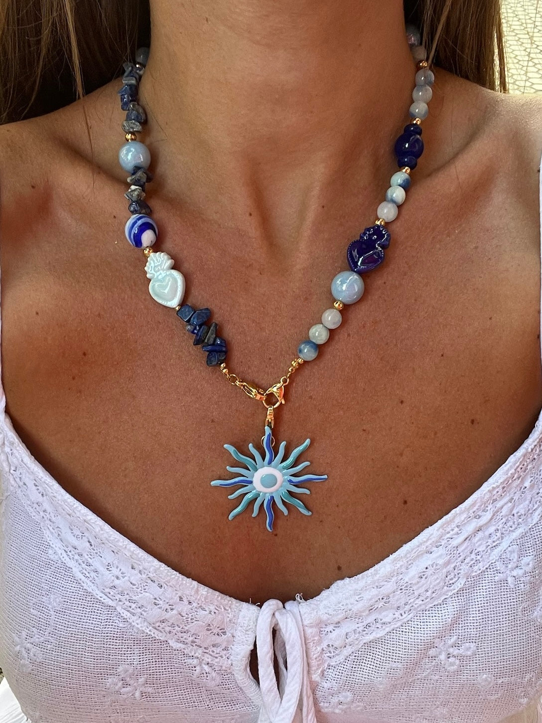- COMO USAR: es la mitad de un collar que puedes combinar tú misma con otros modelos de mitades o incluso añadir a otra media del mismo modelo para crear tu collar. También lo puedes usar de pulsera.